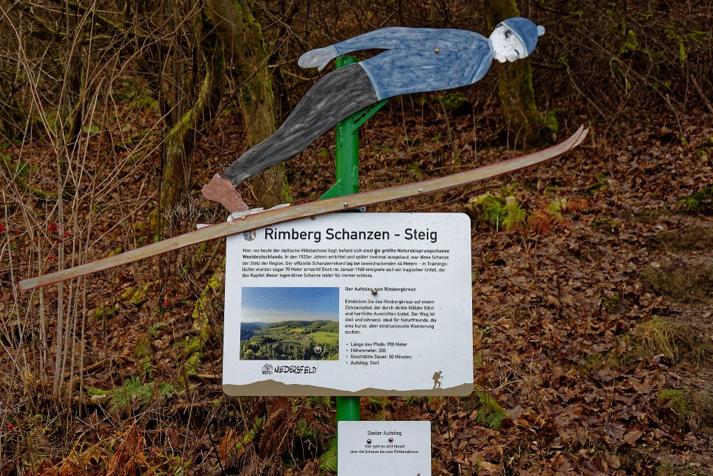 Am Sonntag haben wir seit längerer Zeit mal wieder den Hillebachsee in Niedersfeld besucht. Eigentlich wolllten wir nach Winterberg, aber dort war es zu nebelig. Am sonnigen See habe ich dann ein Schild entdeckt: Rimberg Schanzen-Steig. Und tatsächlich ging es an dieser Stelle sehr steil nach oben.