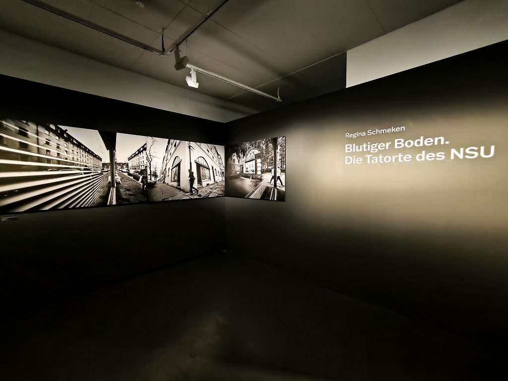 Die Künstlerin Regina Schmeken besuchte 2013 und 2015/2016 die Tatorte des NSU. Ihre großformatigen Schwarzweißaufnahmen zeigen die verstörende Normalität der Schauplätze von Hass und Gewalt inmitten deutscher Städte. Ihre Fotografien versuchen das Ungeheuerliche dieser Taten begreifbar zu machen und rufen in Erinnerung: Die Attentate waren Angriffe auf universelle Menschenrechte und damit auch auf unsere gesamte Gesellschaft.