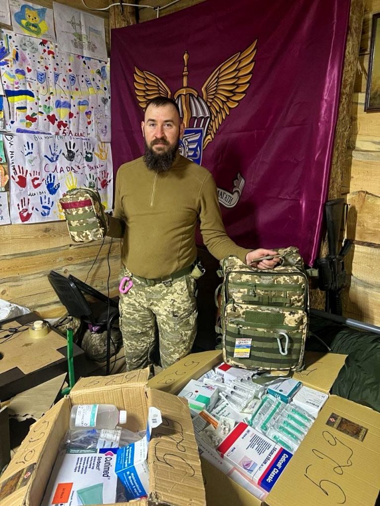 Wir haben viel miteinander gesprochen und Nachrichten aus dem Kriegsgebiet erhalten. Der Rucksack mit Medikamenten (siehe Bild oben) ist beim Front-Arzt angekommen. Wir treffen nun Vorbereitungen für unseren letzten Tag in der Ukraine.