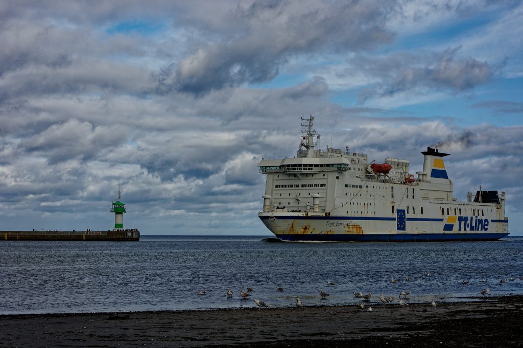 Wie sich die Zeiten ähneln, aber doch nicht gleichen. Vor fast genau zehn Jahren habe ich diesen Blogbeitrag geschrieben. Eine Fähre gleitet die Trave hinunter, im Vordergrund spreizen sich zwei Angeln, eine grau-neblige Atmosphäre. Abwärts: Ich seh die Schiffe den Fluss herunterfahren …