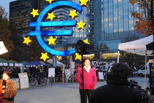 Internationale Filmcrews vor EZB und Occupy-Camp im November 2011 (foto: chris)