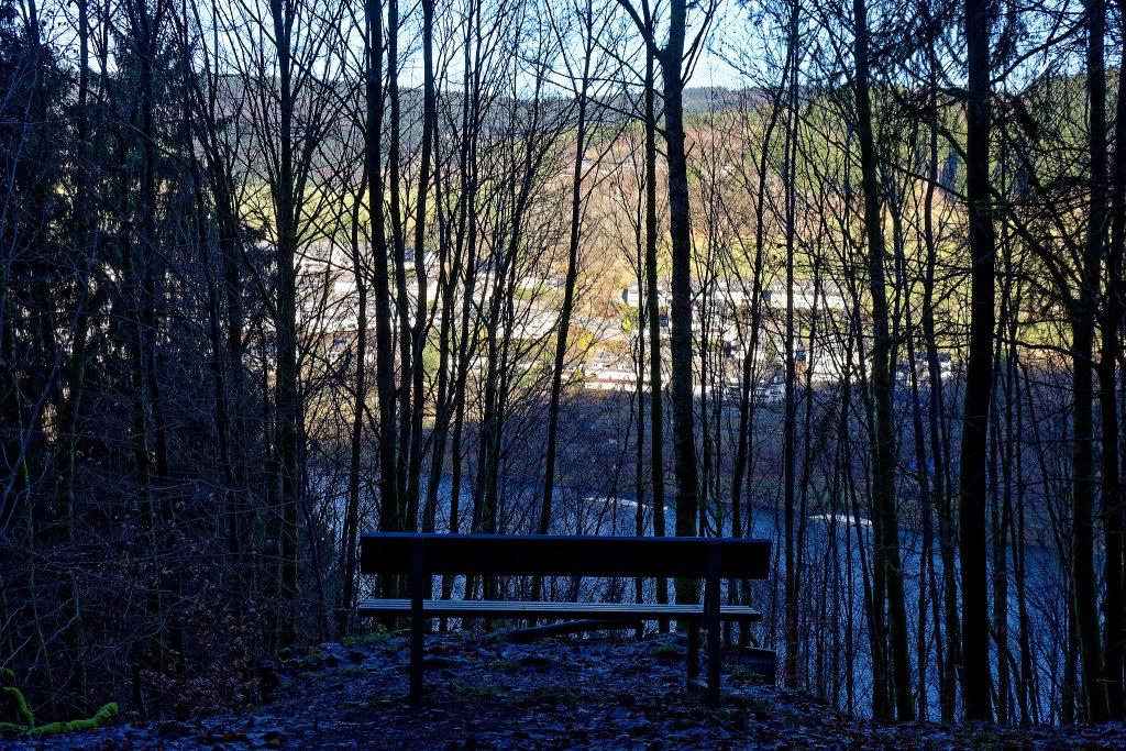 Am Sonntag haben wir seit längerer Zeit mal wieder den Hillebachsee in Niedersfeld besucht. Eigentlich wolllten wir nach Winterberg, aber dort war es zu nebelig. Am sonnigen See habe ich dann ein Schild entdeckt: Rimberg Schanzen-Steig. Und tatsächlich ging es an dieser Stelle sehr steil nach oben.