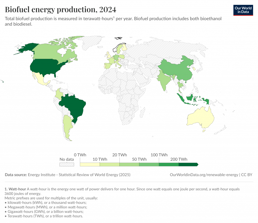 In the map below, you can get a view of where the world’s biofuels are grown.