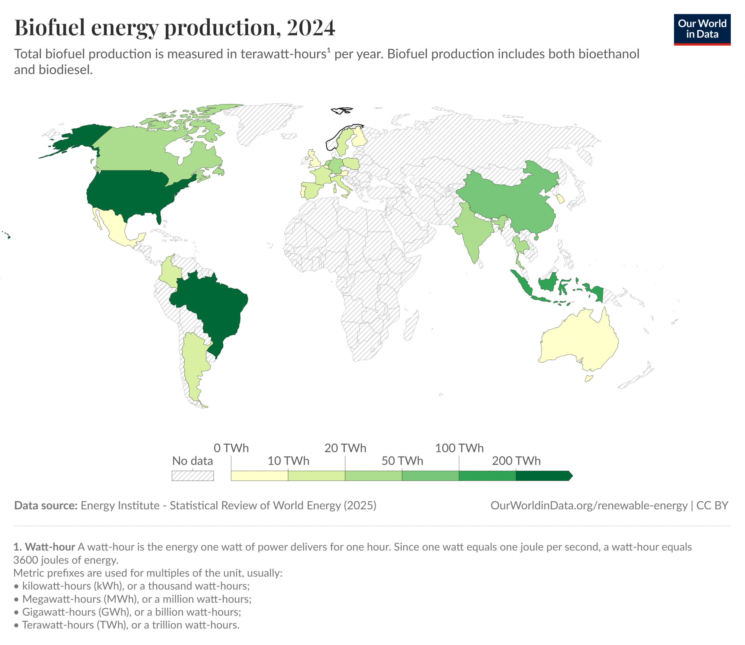 Before we get into the calculations, it’s worth a quick overview of where biofuels are produced today, and what their impacts are.If you’re already familiar with biofuels, you might want to skip to the next section.