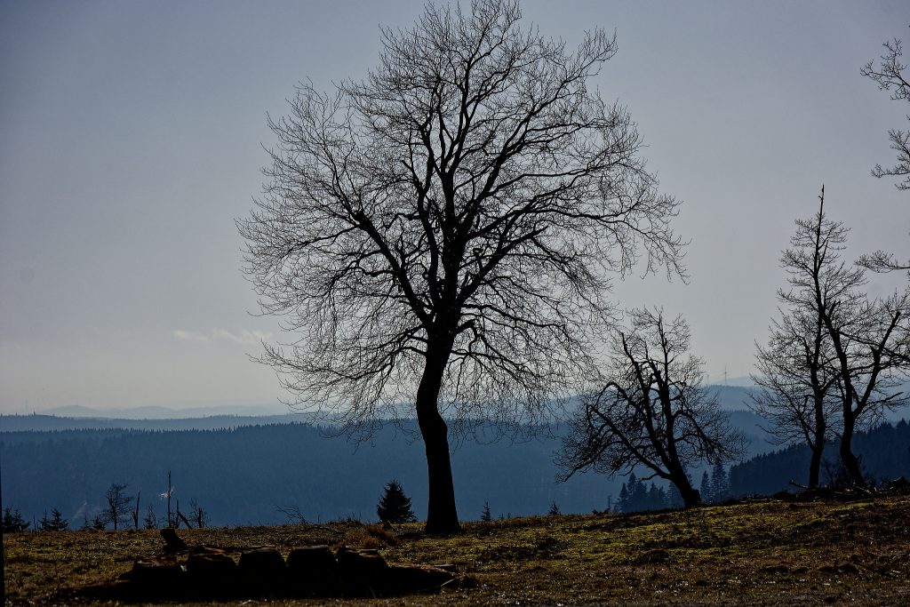 Wer von der Tasse Kaffee aufblickt, kann einen der vielen interessanten Bäume sehen. Für mich persönlich sind sie das Beste auf dem Kahlen Asten. Auf Platz zwei folgen die Sonnenuntergänge.