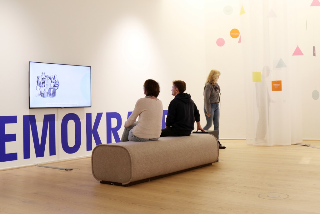 Im ersten Ausstellungsraum des Sauerlandmuseums werden die Säulen der Demokratie erklärt (Foto: Alexandra Zander)